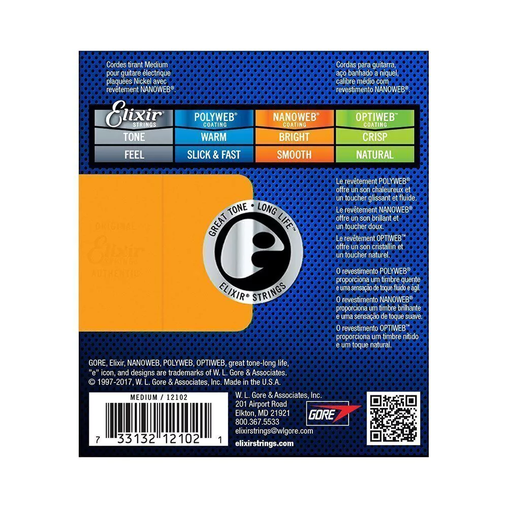 Elixir® Strings para guitarra elétrica possuem o mesmo toque, força e detalhes das cordas convencionais, ao mesmo tempo em que oferecem o melhor timbre que, de acordo com relato de músicos, dura mais do que qualquer outra corda, sem ou com revestimento.